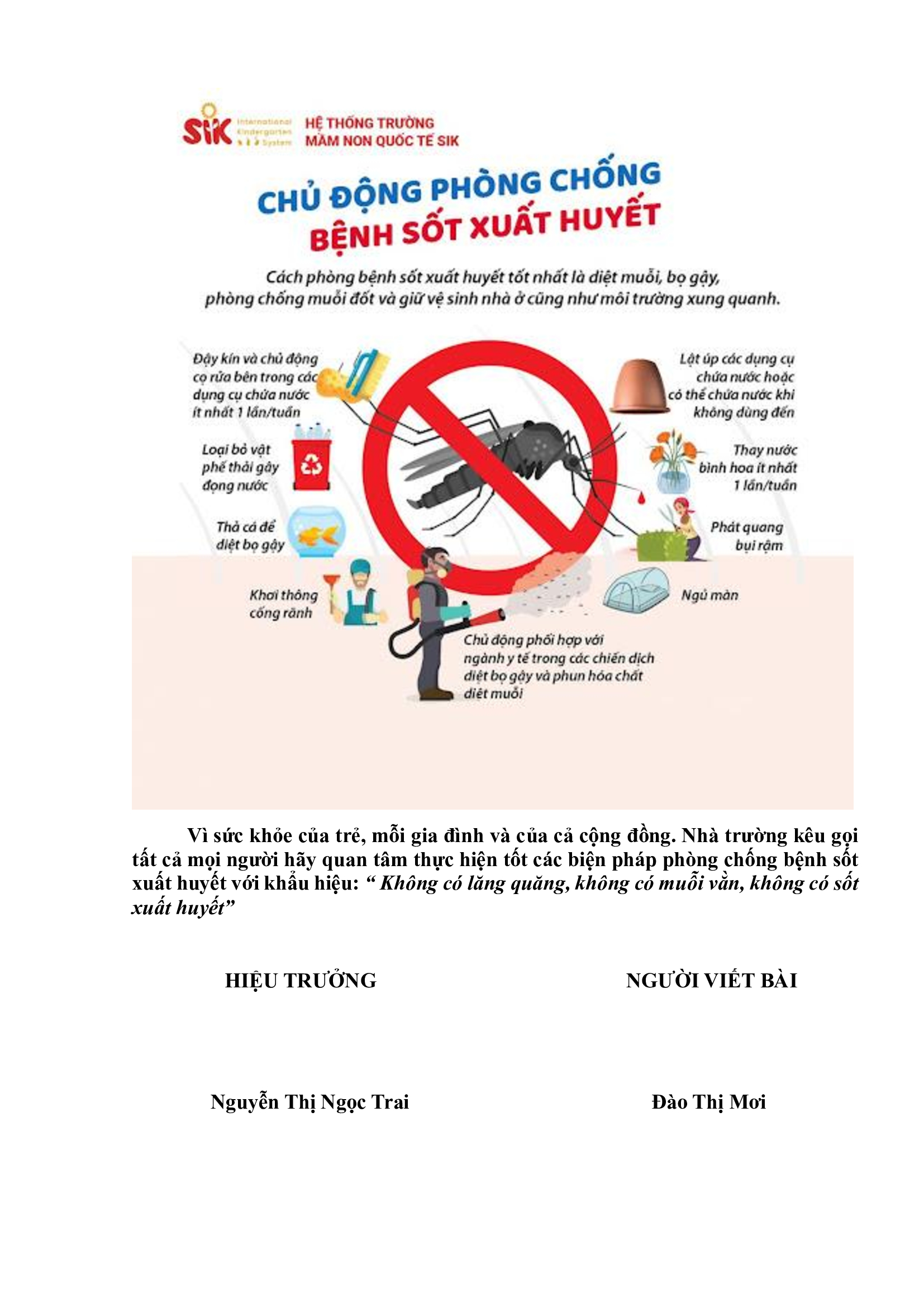 BÀI TUYÊN TRUYỀN PHÒNG CHỐNG BỆNH SỐT XUẤT HUYẾT CHO TRƯỜNG MẦM NON
